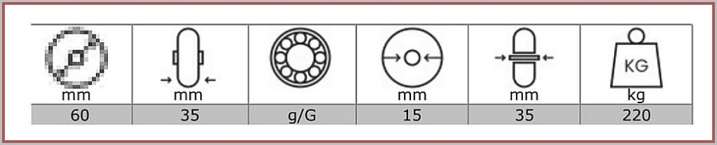 RG-60x35x15 PU - poliuretán görgő,golyóscsapágy,220 Kg