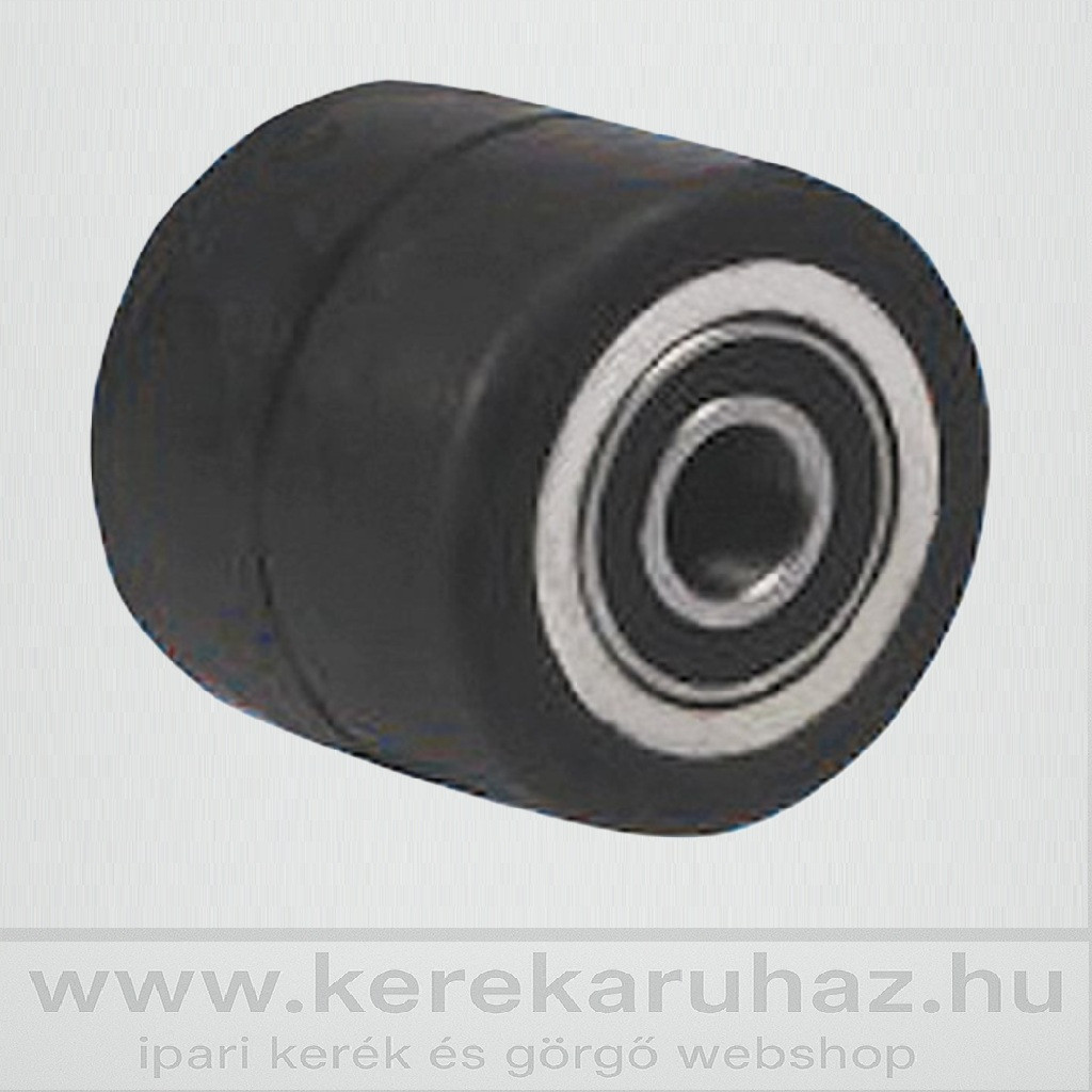 Erős és tartós raklapemelő görgő gumis futófelülettel, 510 kg terhelhetőséggel. Ideális gyárakba, raktárakba, folyamatos használatra.