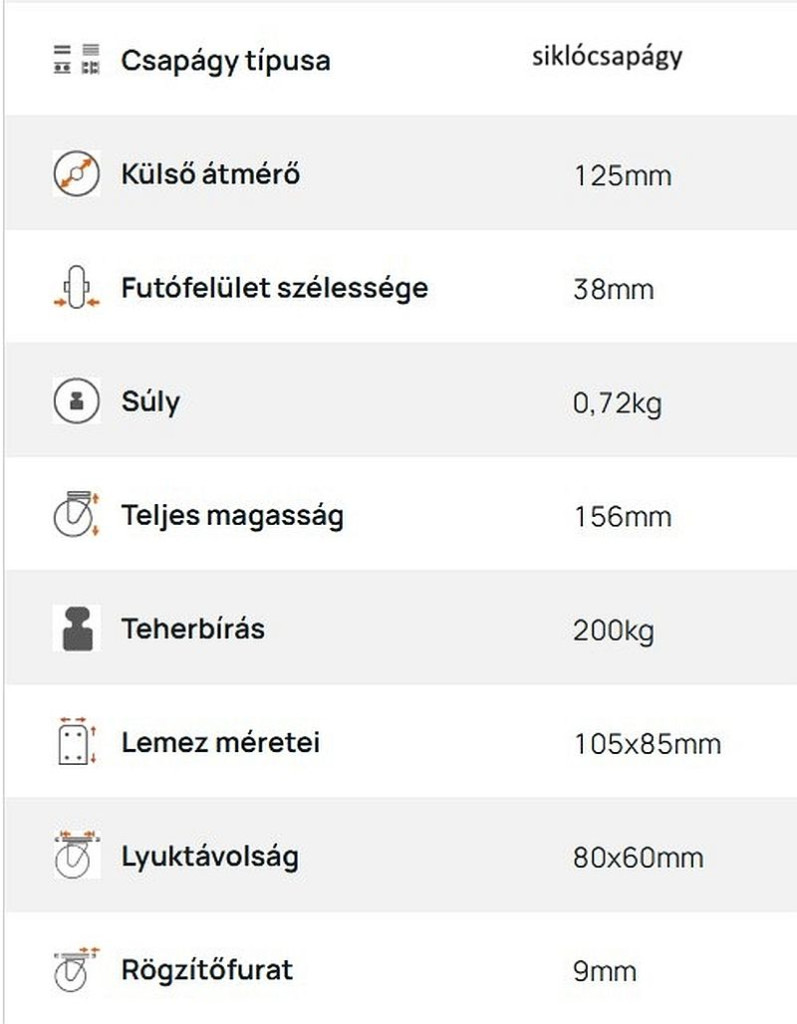 Teherbírás (200 kg) – közepesen nehéz terhek mozgatásához is használható, pl. szerszámgépek, munkaasztalok, ipari gördíthető állványok