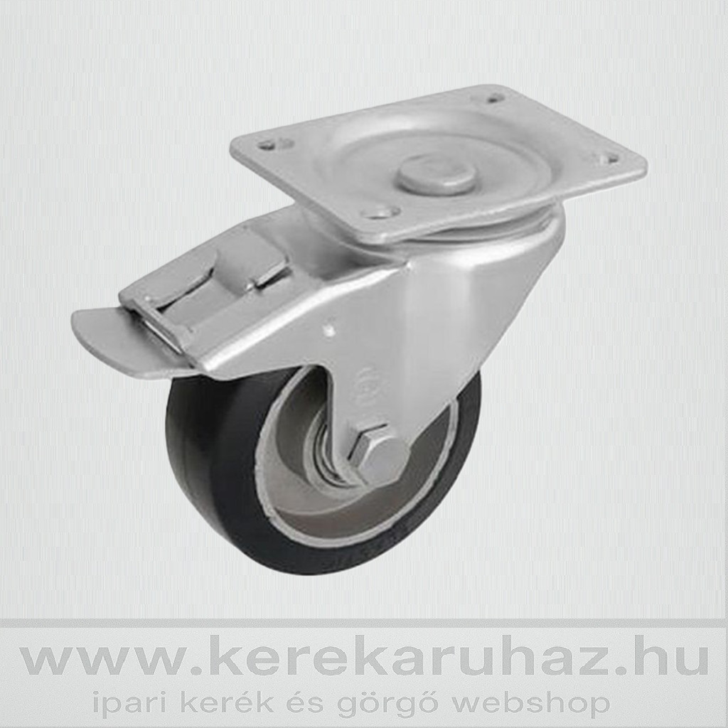 Az öntött alumínium felni és az elasztikus fekete gumi futófelület kombinációja halk, rezgéscsillapított mozgást biztosít ipari használatban.