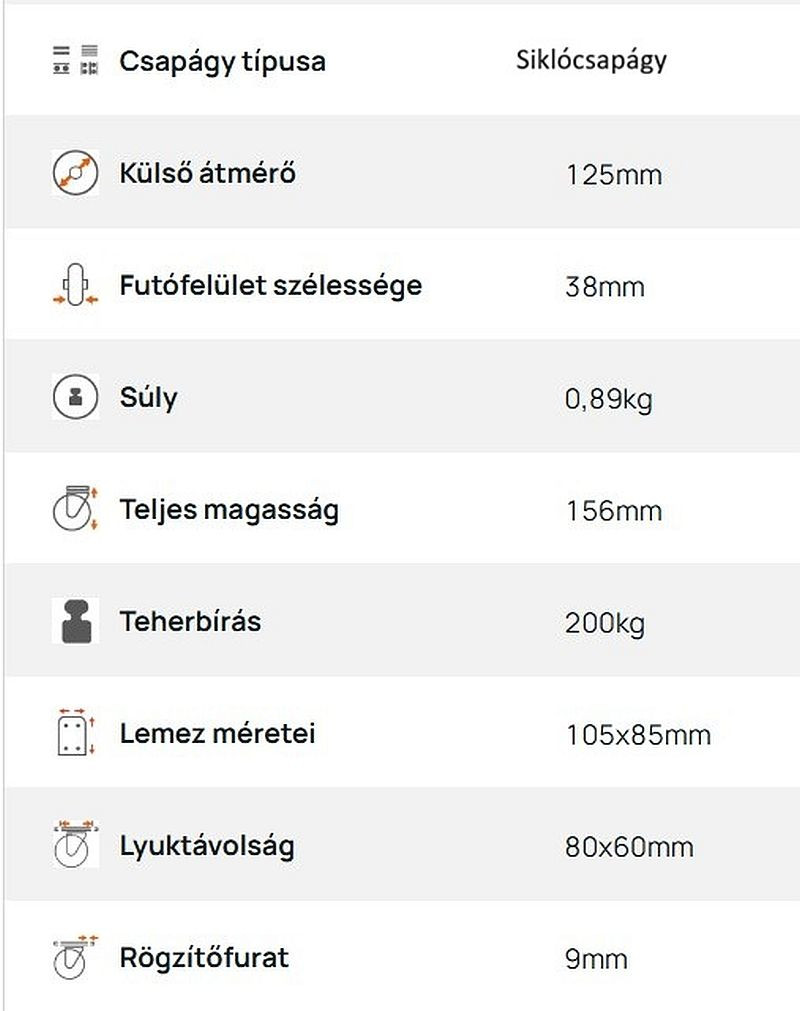Kerék: Poliamid, siklócsapágy