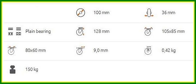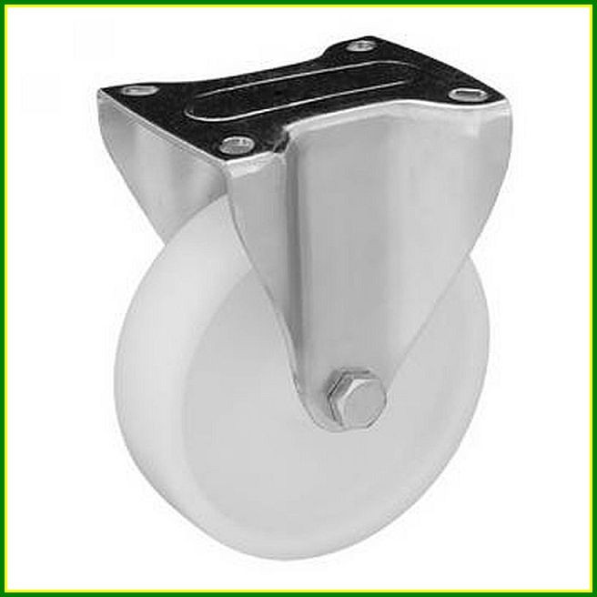 Ez a kerék fix talpas acél villával és 100 mm átmérőjű poliamid futófelülettel rendelkezik. A teherbírása 150 kg.