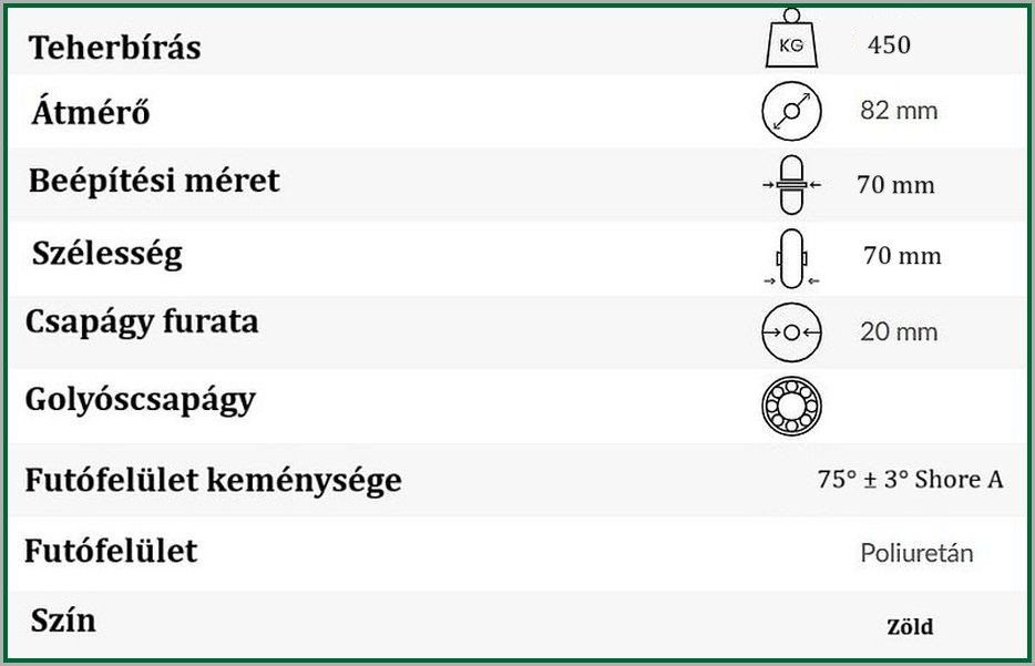 Ezzel a villagörgővel a kopásállóság, az alacsony zajszint és az alacsony gördülési ellenállás és a nagy teherbírás kombinációja érhető el, így ideális megoldás olyan környezetekben, ahol fontos a csendes működés és a hatékony anyagmozgatás.